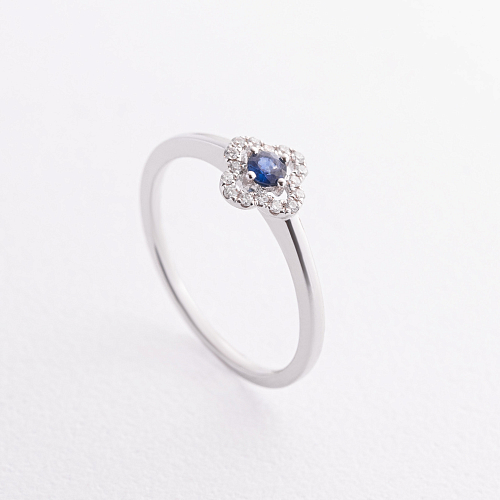 Золотое кольцо "Клевер" с бриллиантами и сапфиром кб0626ca