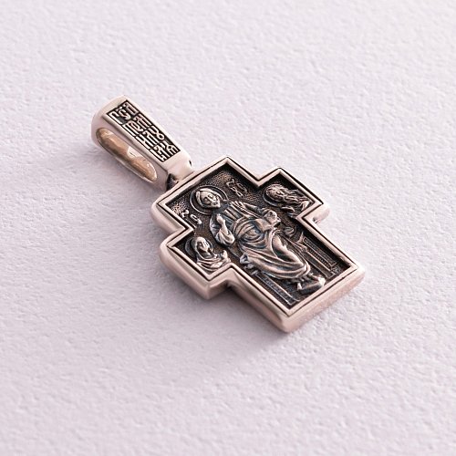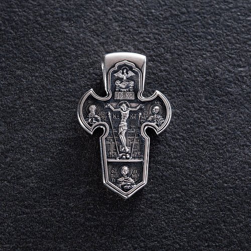 Серебряный православный крестик с чернением " Распятие. Божия Матерь" Воплощение". Пять святителей" 13437