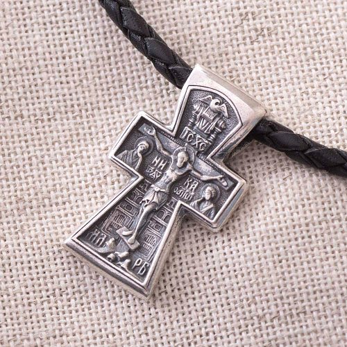 Серебряный православный крестик с чернением " Господь Вседержитель. Илия пророк в пустыне" 13660
