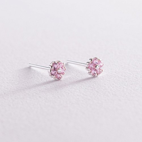 Серебряные серьги - пусеты "Цветочки" с фианитами 121883