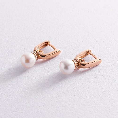 Золотые серьги с культивированным пресноводным жемчугом с02235