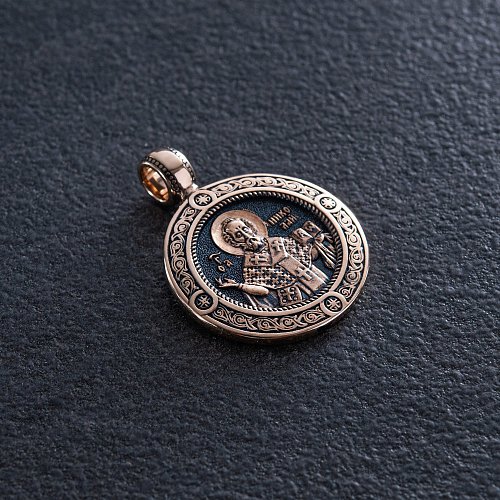 Золотая подвеска "Св. Николай Чудотворец" с чернением п02410