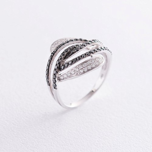Золотое кольцо с черными и белыми бриллиантами к522A1