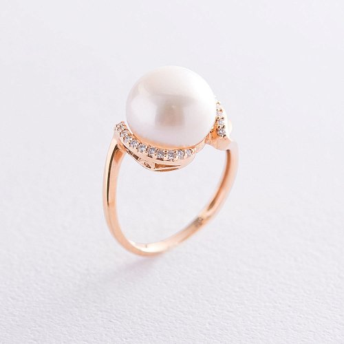 Золотое кольцо "Круговорот" с бриллиантами и жемчугом к954