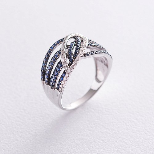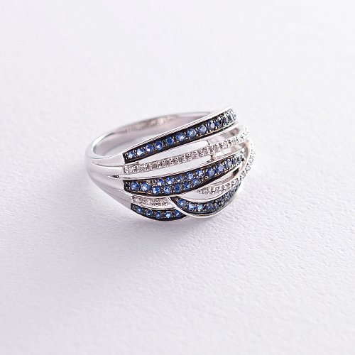 Золотое кольцо с бриллиантами и сапфирами к597A1