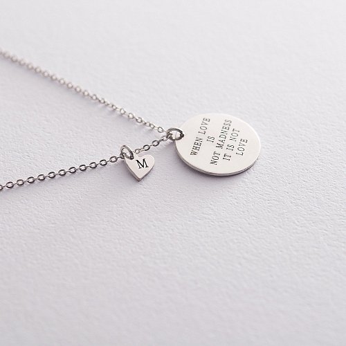 Серебряное колье с гравировкой "Сумасшедшая любовь" 18976с