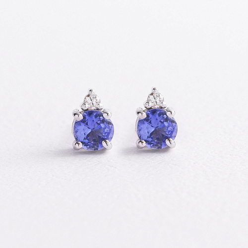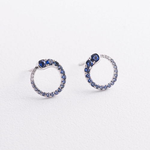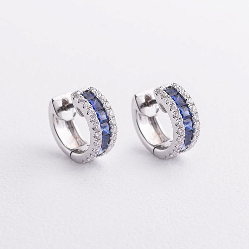 Золотые серьги - пусеты (бриллианты, сапфиры) сб0623lg