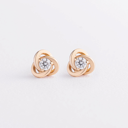 Серьги - пусеты "Fleur" с фианитами (красное золото) с09124