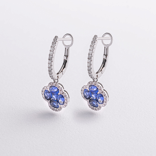 Золотые серьги "Клевер" (бриллианты, сапфиры) сб0553mi