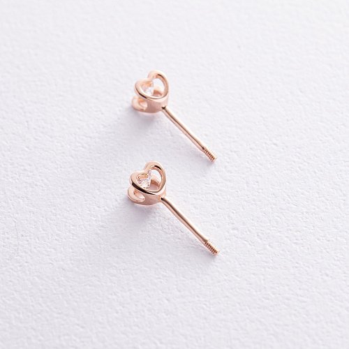 Золотые серьги - пусеты "Сердечки" с фианитами с08461
