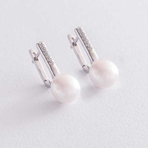 Серебряные серьги с жемчугом и фианитами 2466/1р-PWT