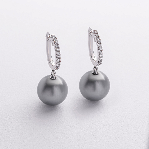 Золотые серьги с жемчугом и бриллиантами сб0378