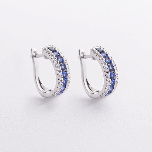 Золотые серьги с бриллиантами и сапфирами сб0678mi