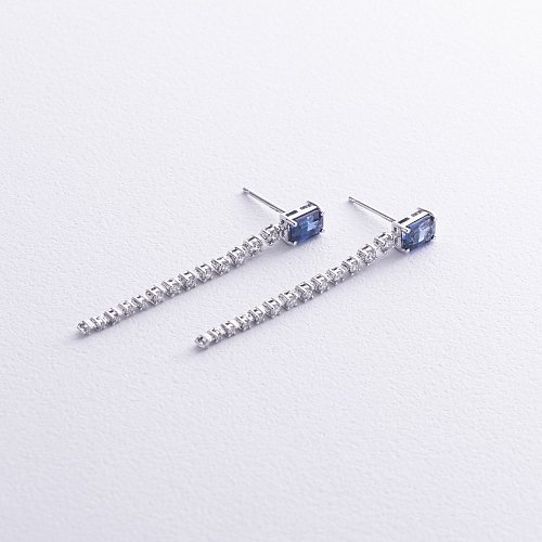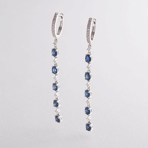 Висячие серьги с бриллиантами и сапфирами из белого золота сб0299ca