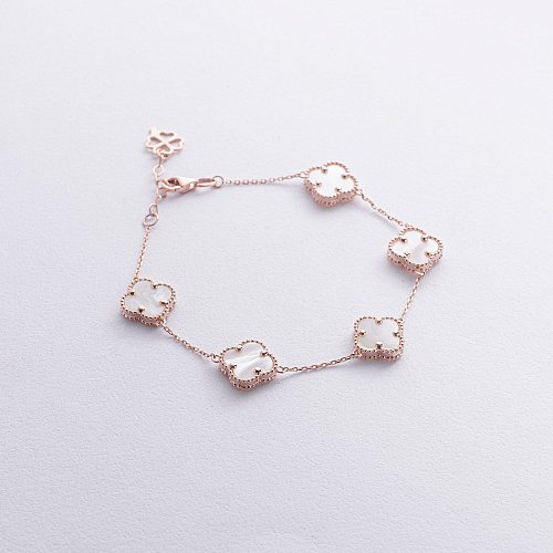 Браслет "Клевера" с перламутром (красное золото) б05444