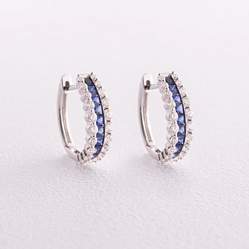 Золотые серьги с сапфиром и бриллиантами сб0053ca