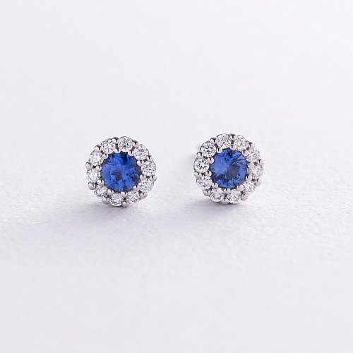 Золотые серьги - пусеты с бриллиантами и сапфирами сб0456nl