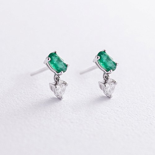 Золотые серьги - пусеты с изумрудами и бриллиантами сб0465ca
