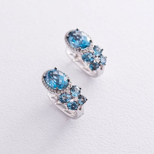Золотые серьги (топазы, бриллианты) сб0723gm