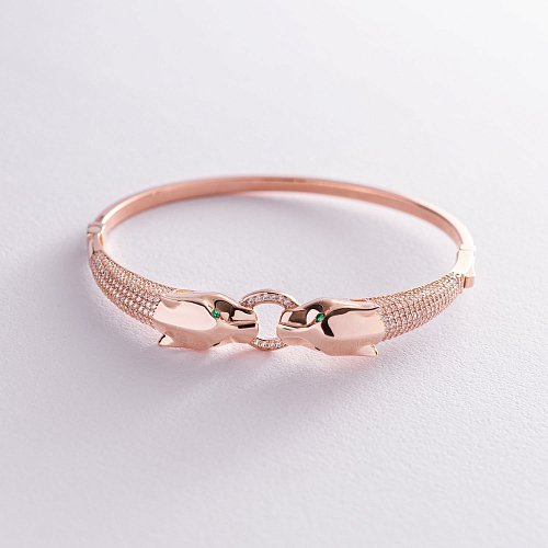 Жесткий золотой браслет "Пантеры" (фианиты) б04772