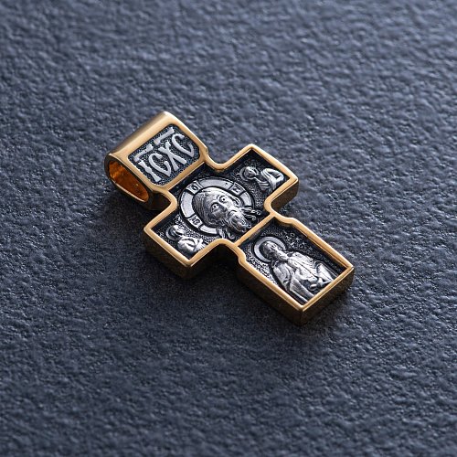 Серебряный крест "Спас нерукотворный. Святитель Николай. Архангел Михаил" 131348