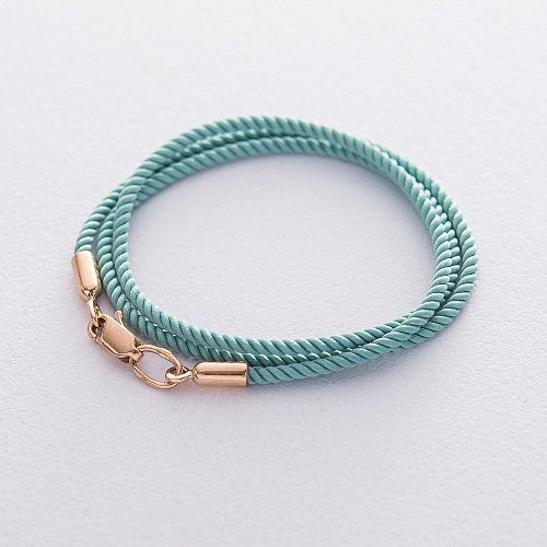 Шелковый бирюзовый шнурок с золотой гладкой застежкой (2мм) кол01012