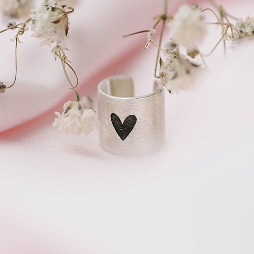 Серебряная серьга-каффа "Сердце" (матовая) 122703ser