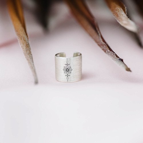 Серебряная серьга-каффа "Цветок" (матовая) 122703цв