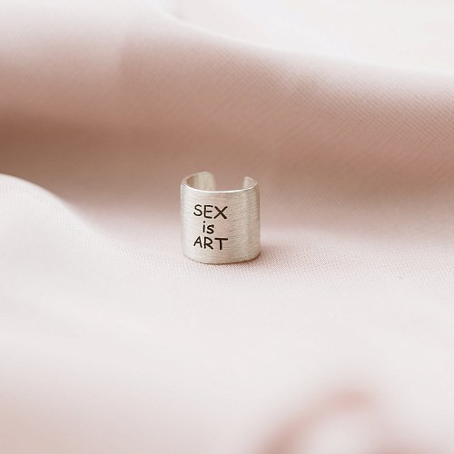 Серебряное кольцо с гравировкой "Sex is art" 112139а