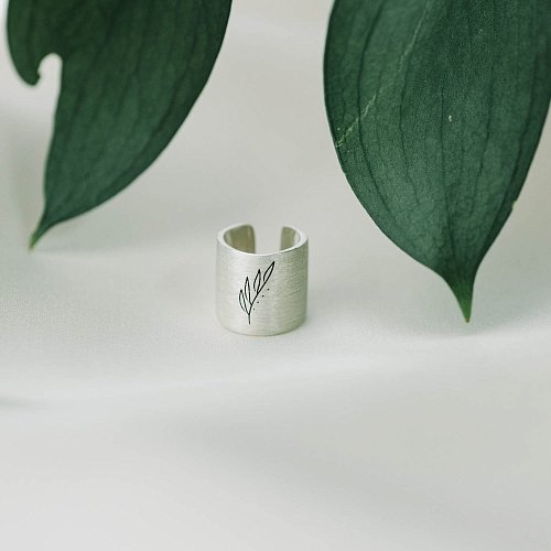 Серебряная серьга-каффа "Веточка" (матовая) 122703vet