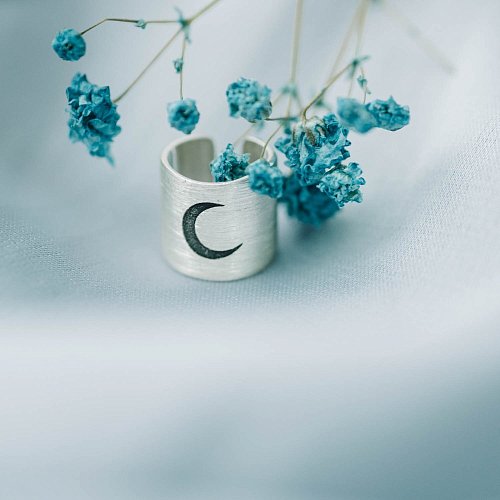 Серебряная серьга-каффа "Луна" (матовая) 122703l