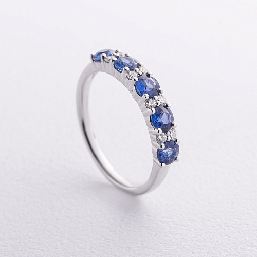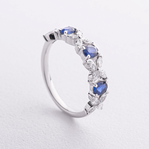 Золотое кольцо с бриллиантами и сапфирами кб0669nl