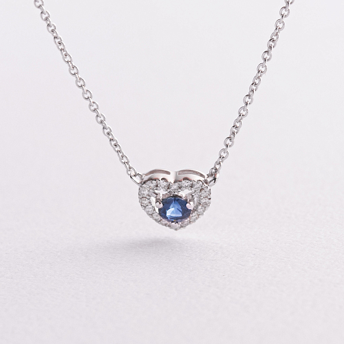 Золотое колье "Сердечко" (бриллианты, сапфир) колб0163ca