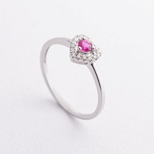 Золотое кольцо "Сердечко" (бриллианты, рубин) кб0620ca
