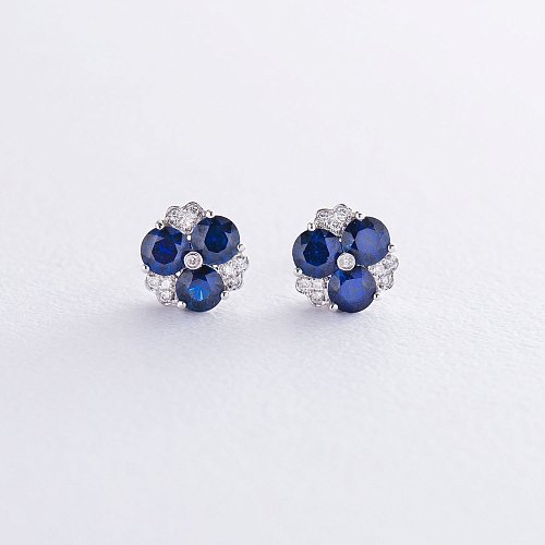 Золотые серьги - пусеты (сапфир, бриллиант) E2980Sda