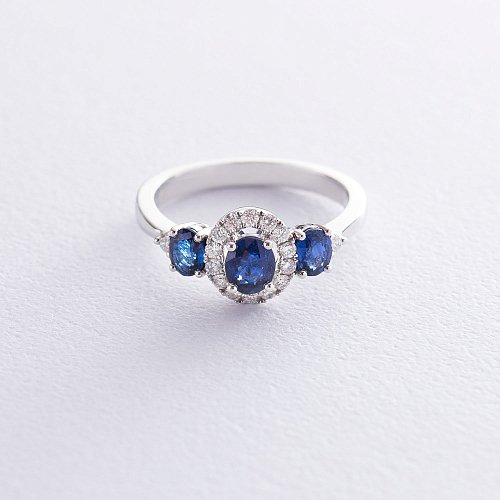 Золотое кольцо с бриллиантами и сапфирами кб0307di