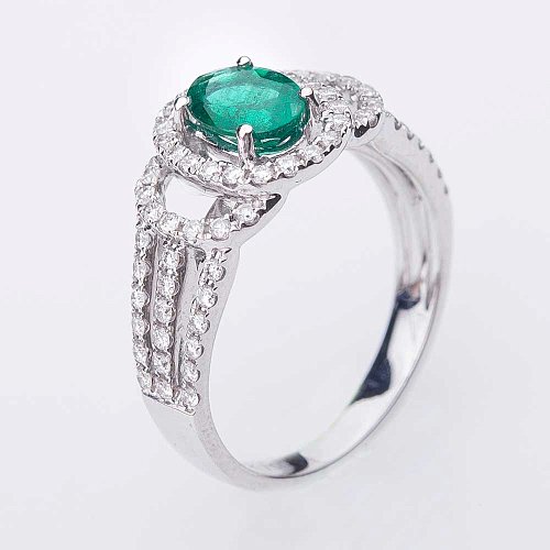 Помолвочное кольцо с бриллиантами и изумрудом doubk458