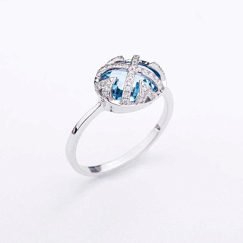 Золотое кольцо с голубым топазом и бриллиантами C01099R