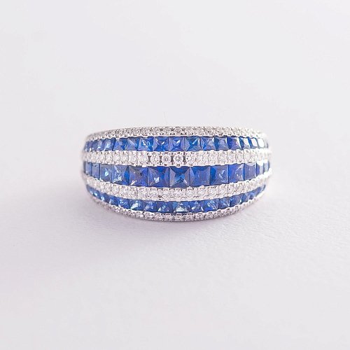 Золотое кольцо с синими сапфирами и бриллиантами R12484Saj