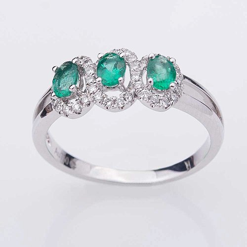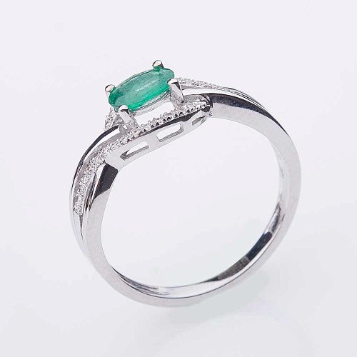 Помолвочное кольцо с бриллиантами и изумрудом к252