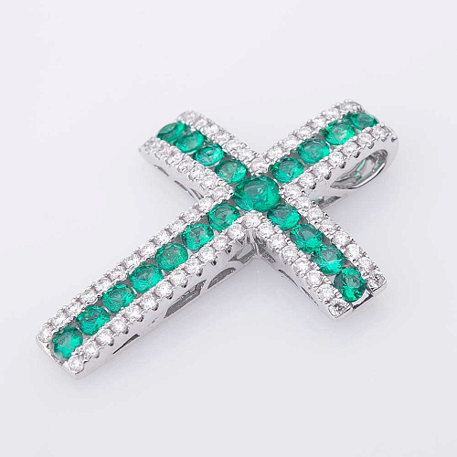 Золотой крестик с белыми и голубыми бриллиантами пм0338