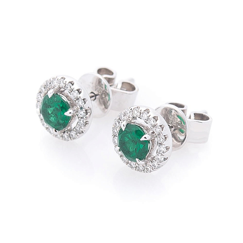 Золотые серьги-гвоздики с бриллиантами и изумрудами с272