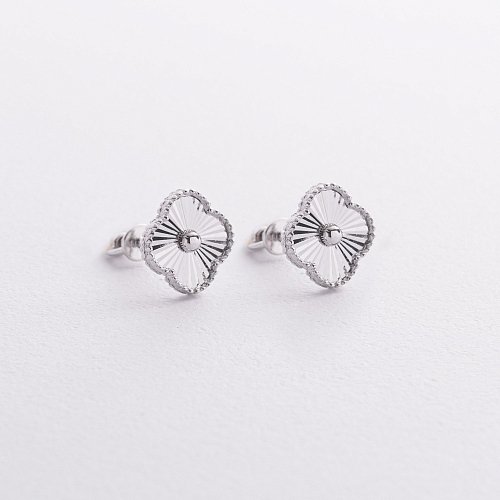 Серьги - пусеты "Клевер" в белом золоте с09359