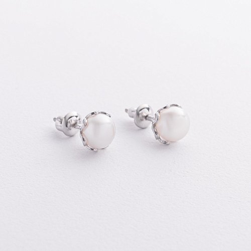 Серебряные серьги - пусеты с жемчугом 2279/9p-PWT