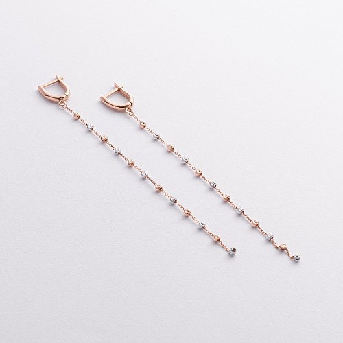 Серьги "Шарики на цепочке" (красное, белое золото) с09371