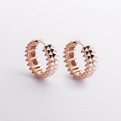 Серьги - пусеты "Сердечки" в красном золоте (фианиты) с09375