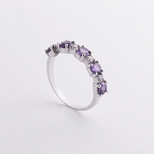 Серебряное кольцо с аметистом и фианитами 1844/1p-AMET