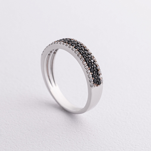 Серебряное кольцо с черными и белыми фианитами 1110/1р-cz