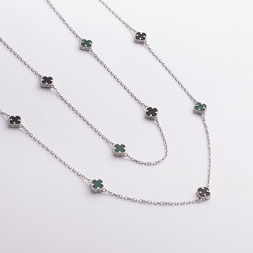 Серебряное колье "Клевер" (оникс, малахит) 181352