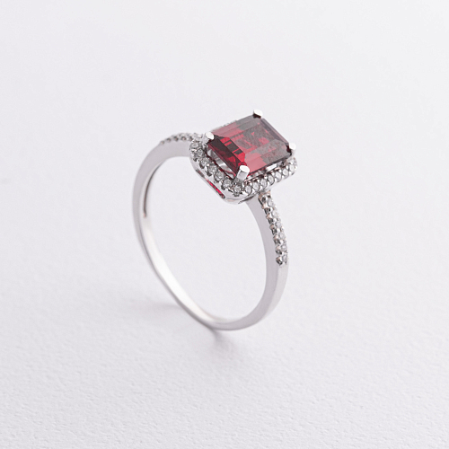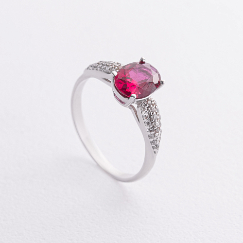 Серебряное кольцо с синт. рубином и фианитами 1856/1p-HRUB